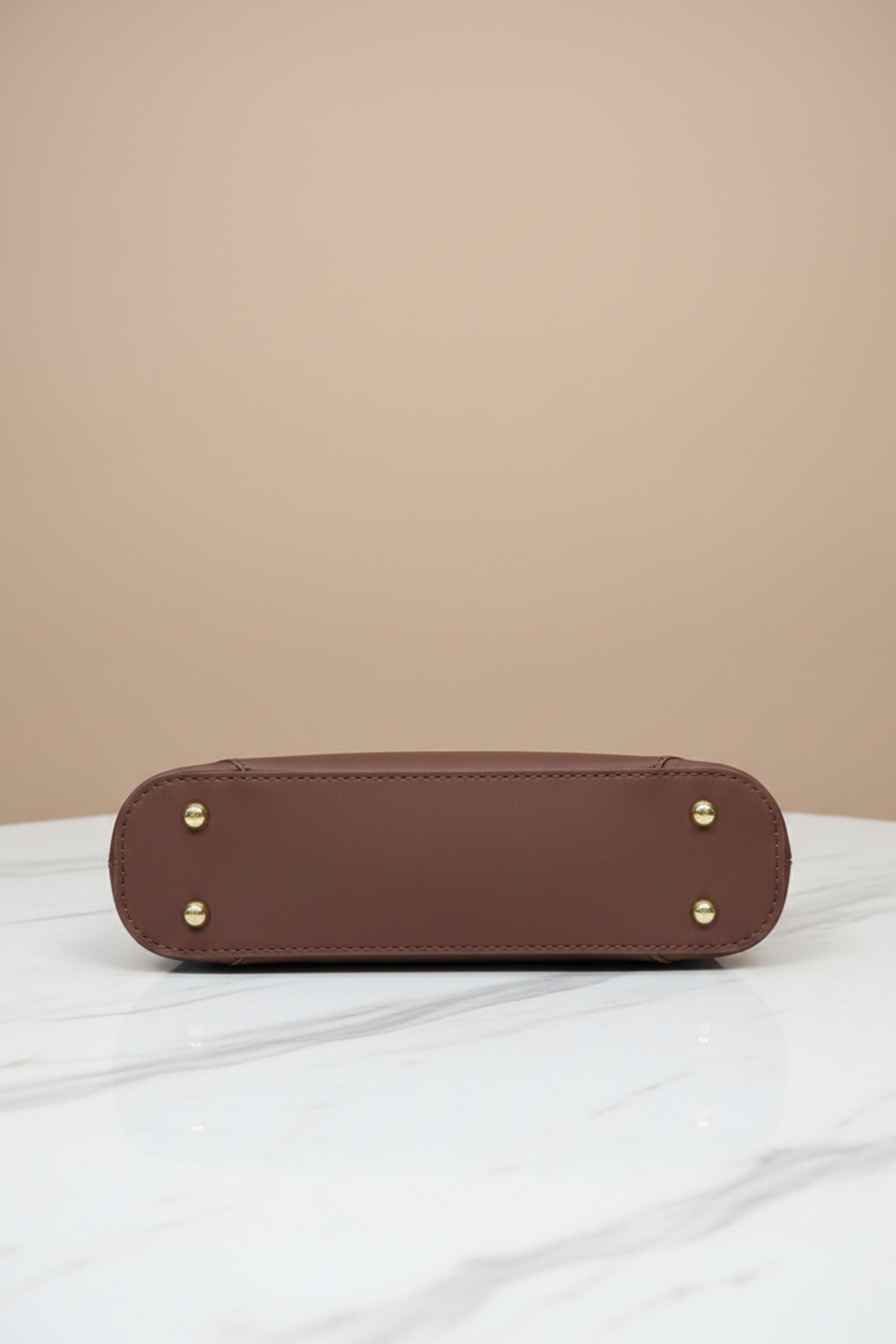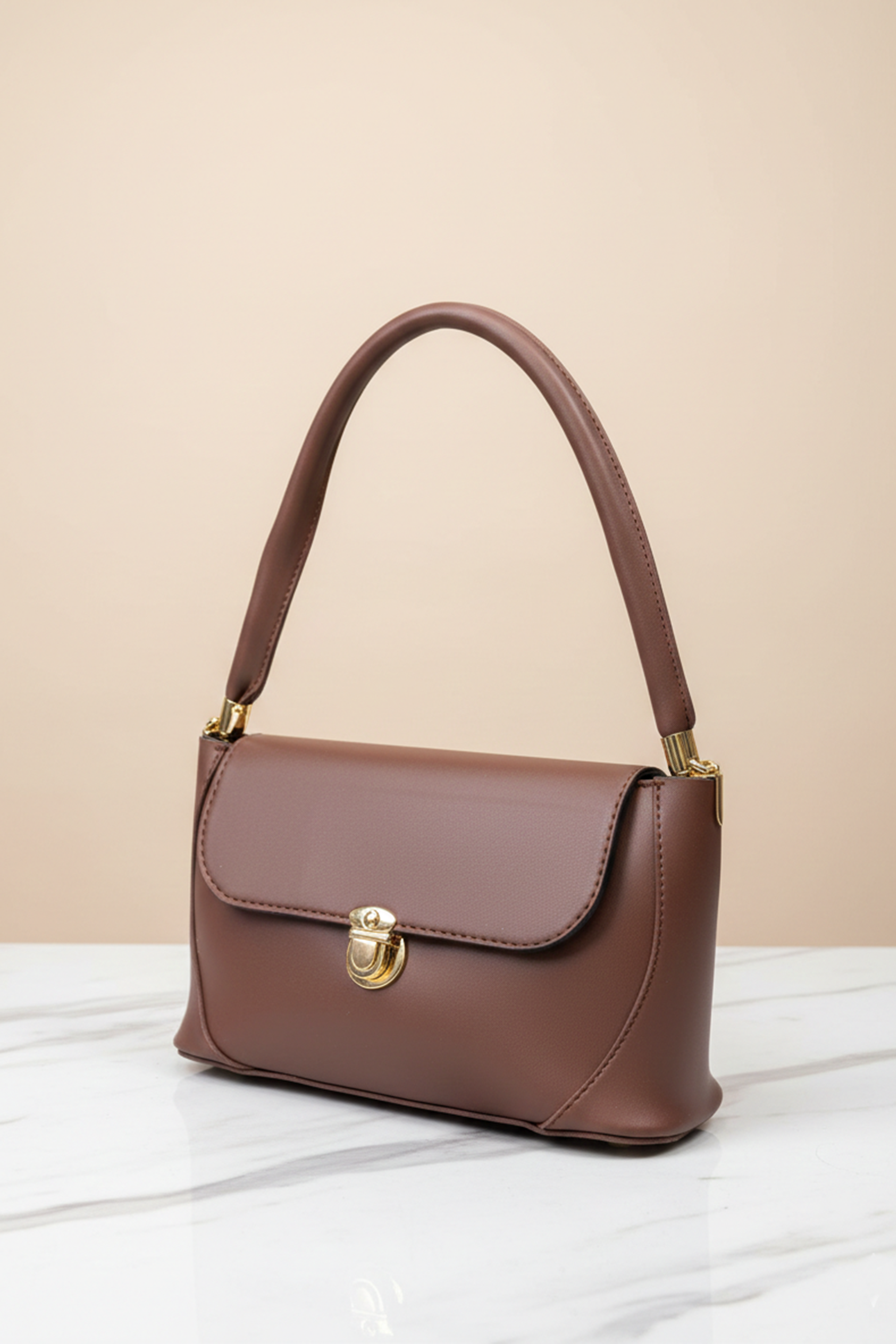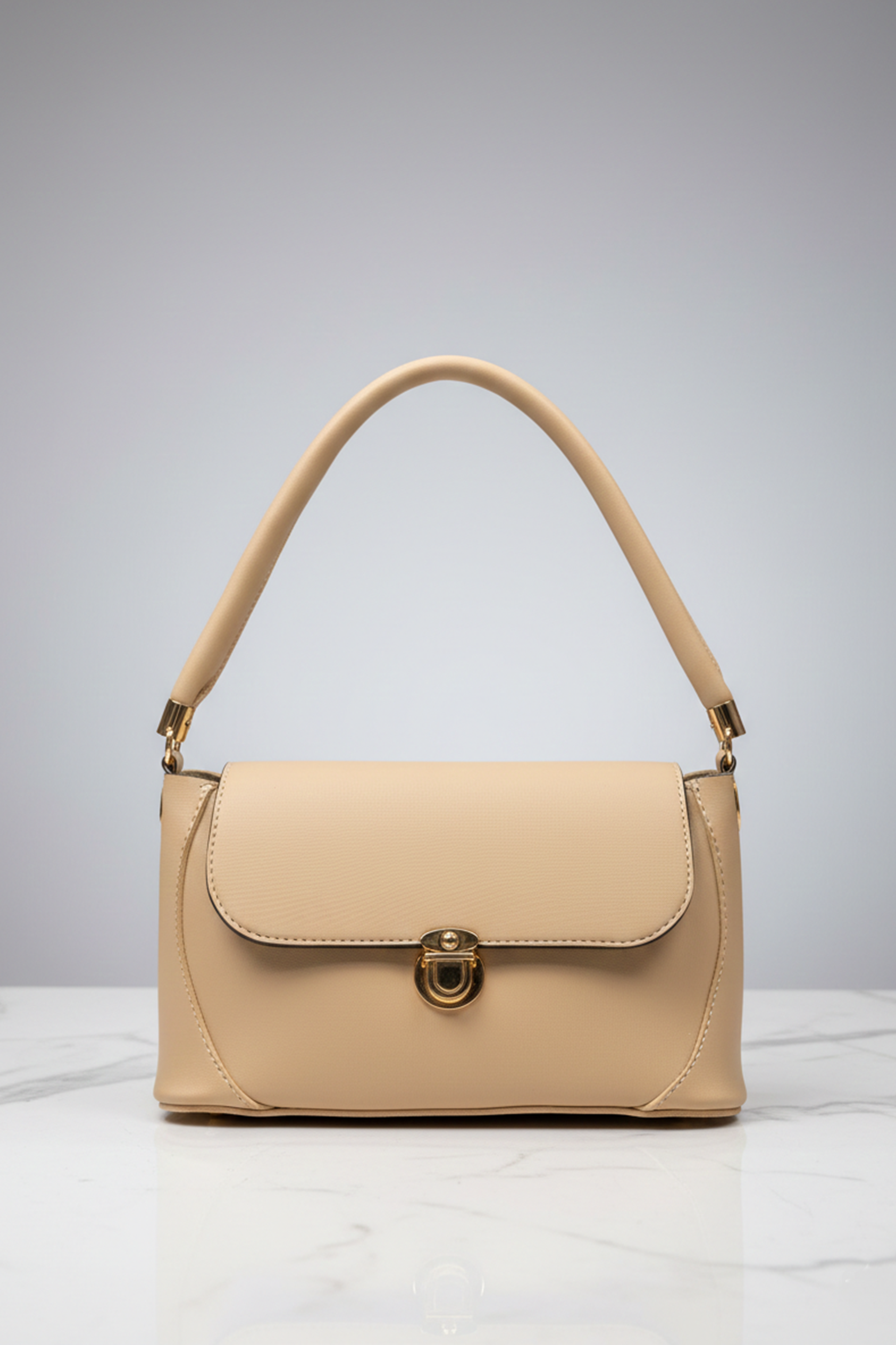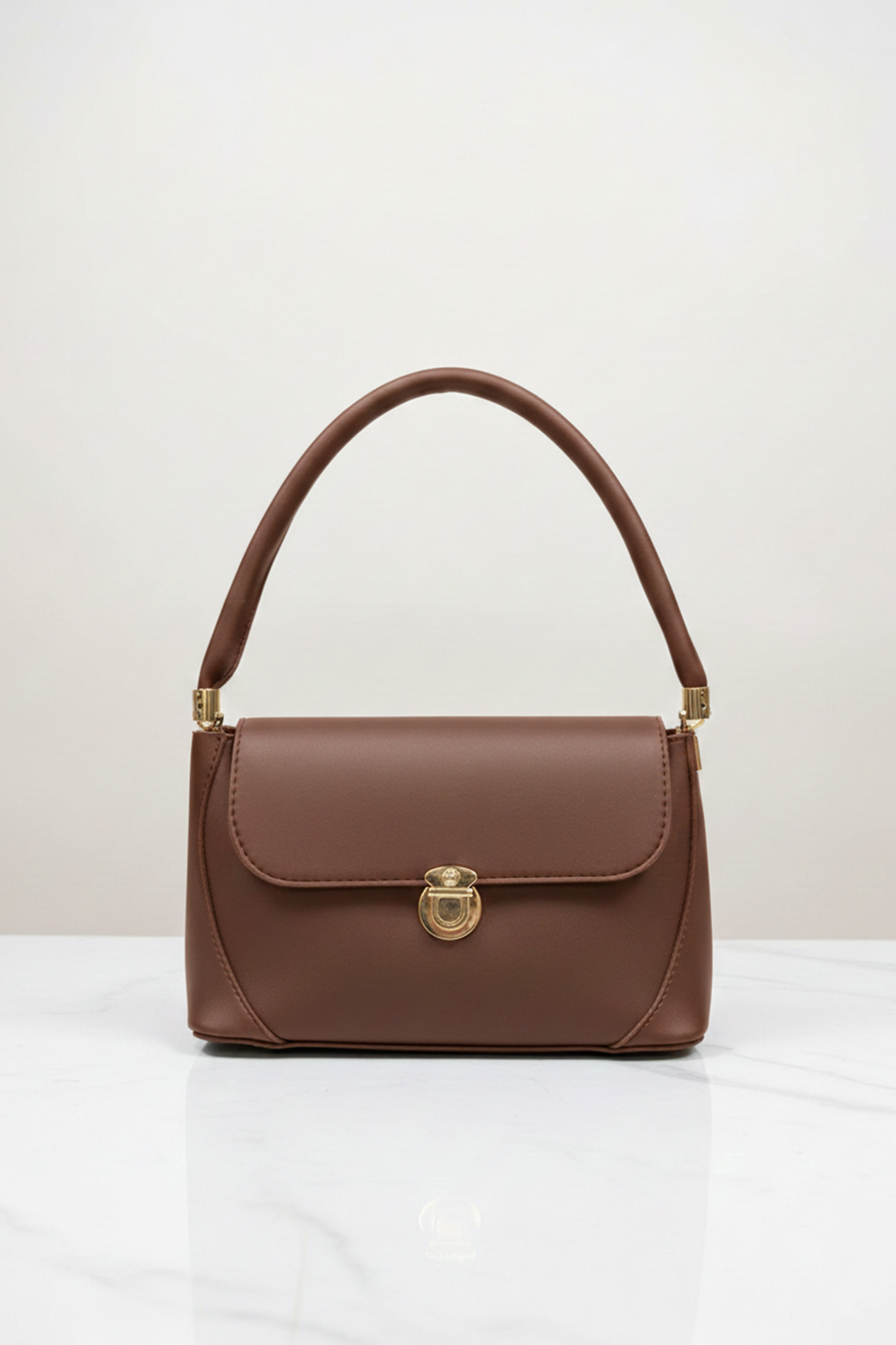 Crafted from smooth, premium vegan leather, it offers a soft yet durable finish that transitions effortlessly from day to evening. The curved top handle adds a graceful touch, while the secure flap closure keeps your essentials neatly tucked away.