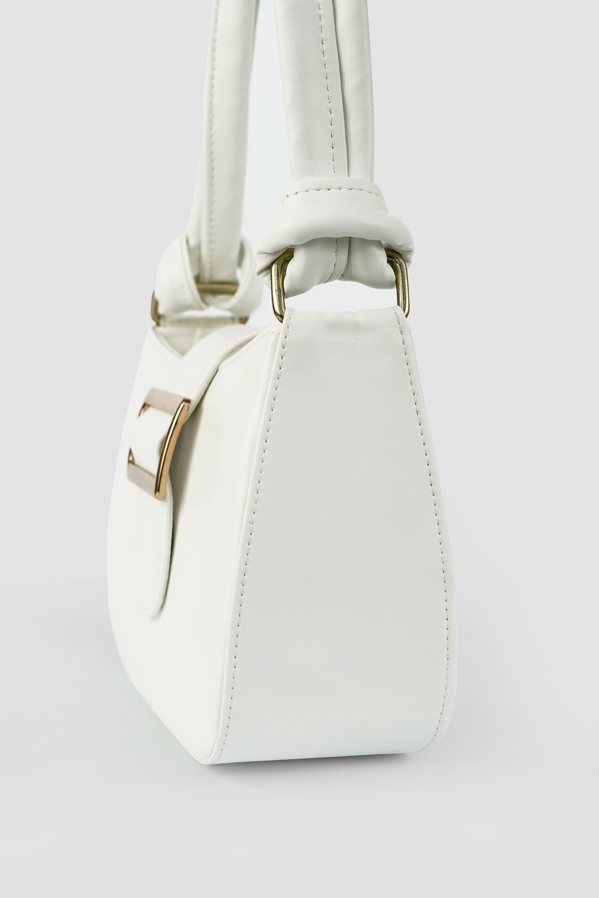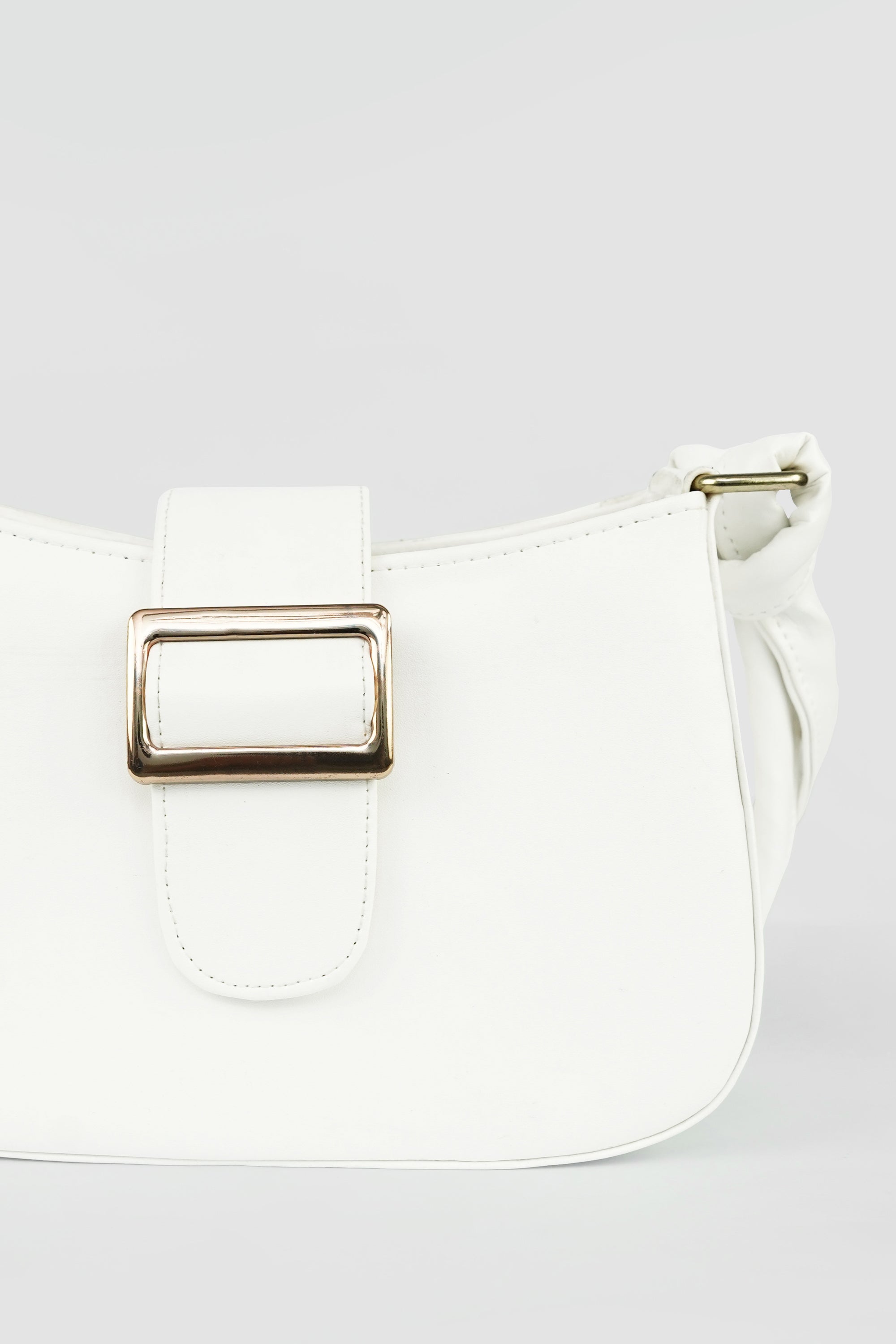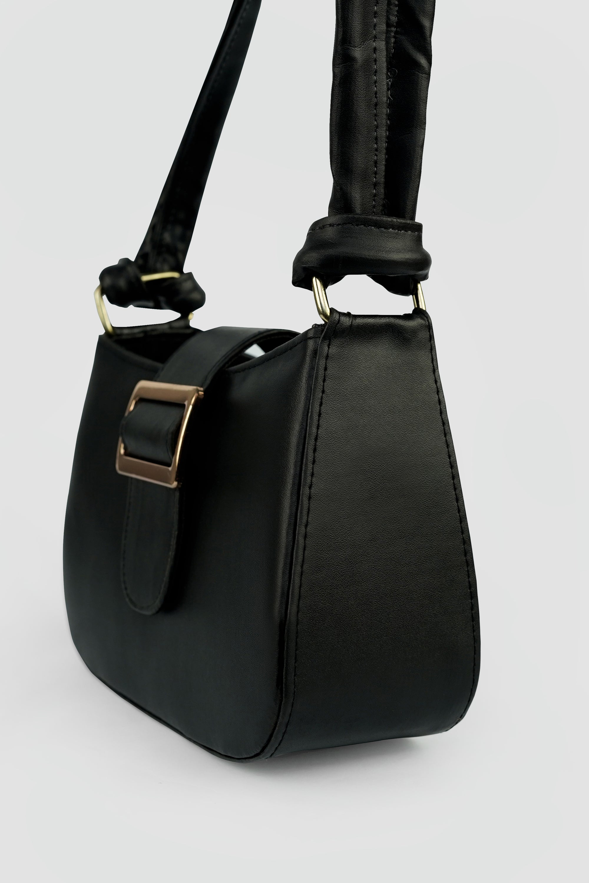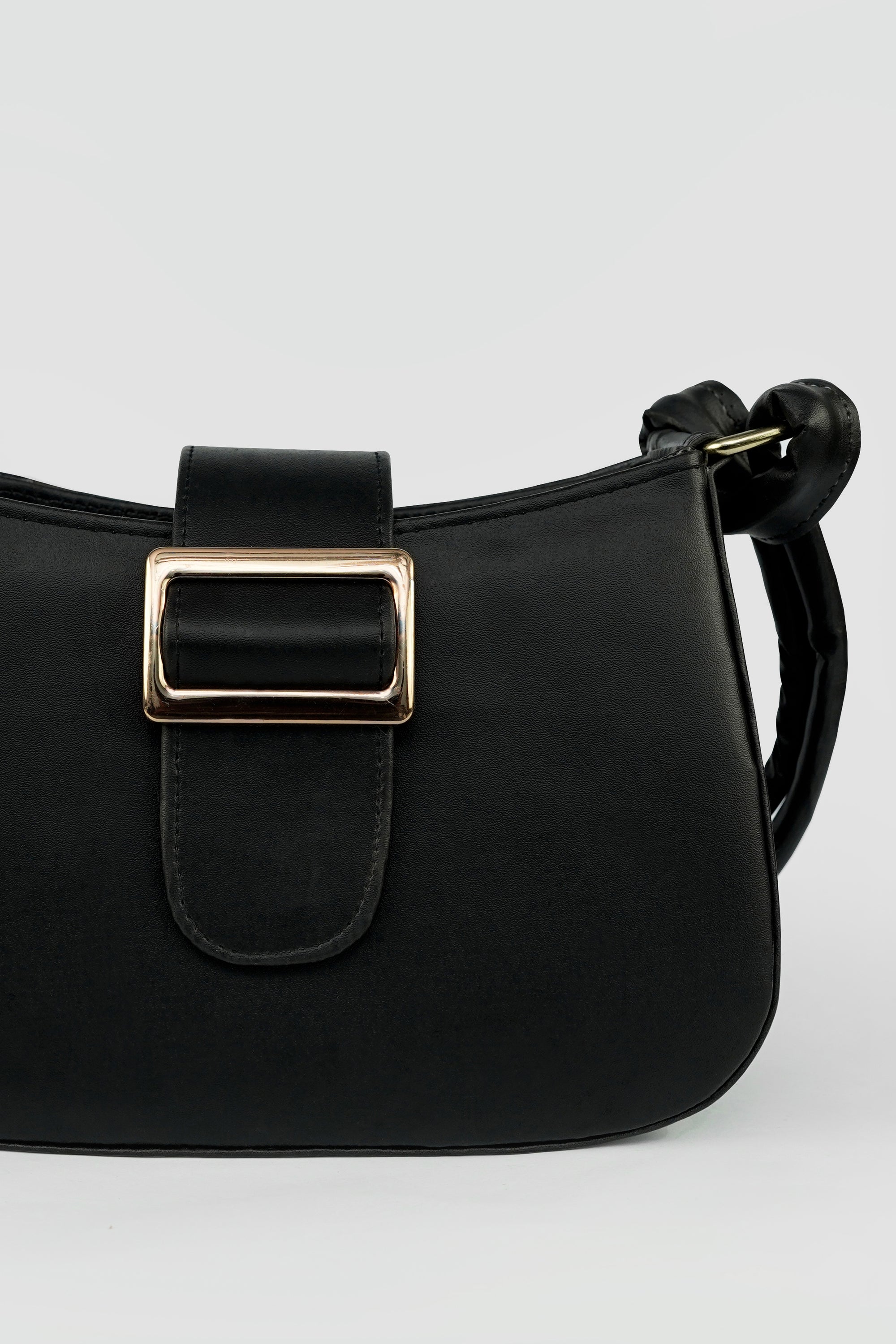 The Elara Buckle is a celebration of understated luxury — crafted in smooth vegan leather, it features a structured silhouette complemented by a bold gold-tone buckle. The soft double-strap handle with a signature chain link detail adds a modern twist to classic elegance.