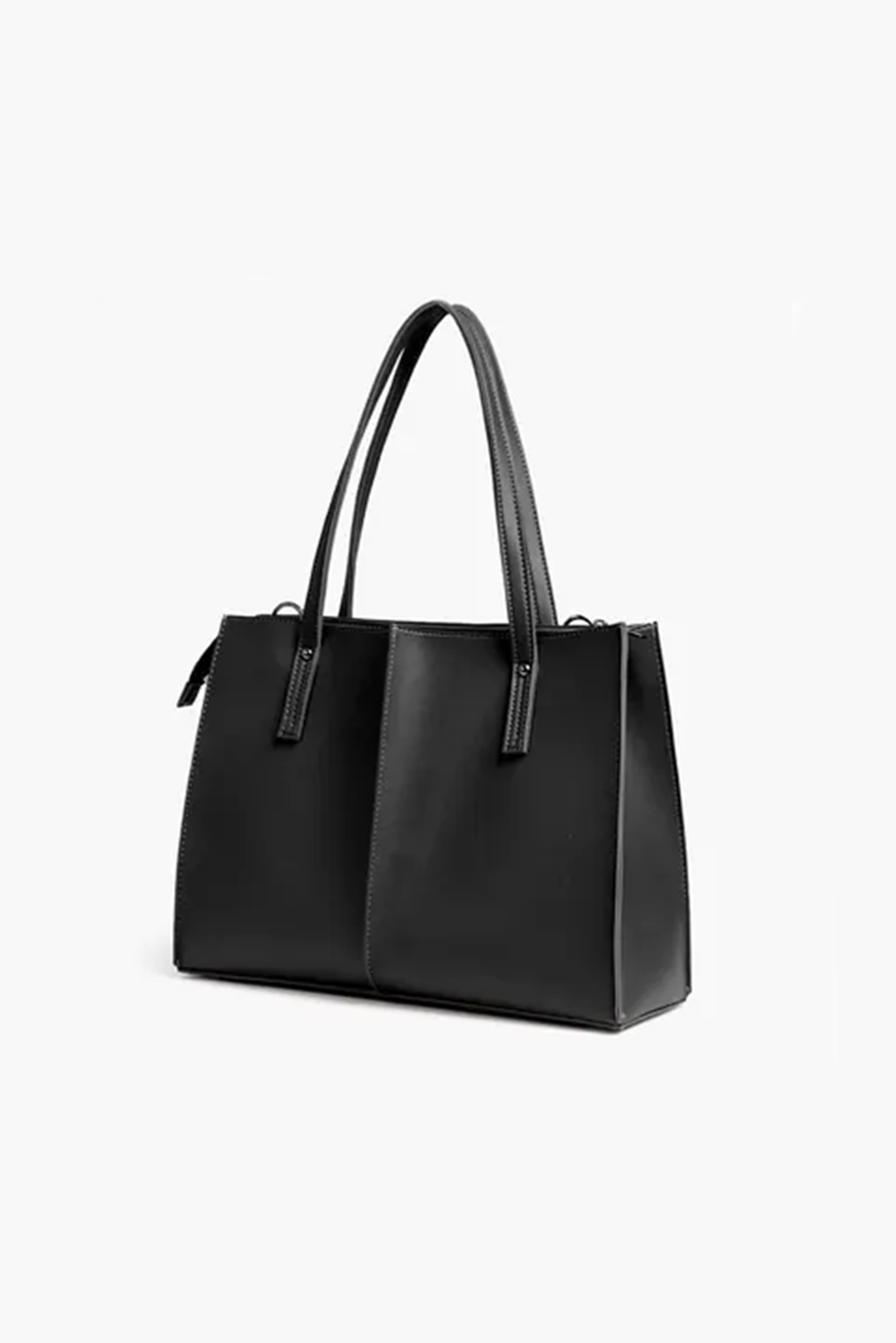 This versatile tote bag features a clean and structured design with a modern aesthetic. The spacious interior provides ample room for your essentials, while the double handles offer comfortable carrying options. The bag's sleek silhouette and minimalist detailing make it a timeless and functional accessory for any occasion.