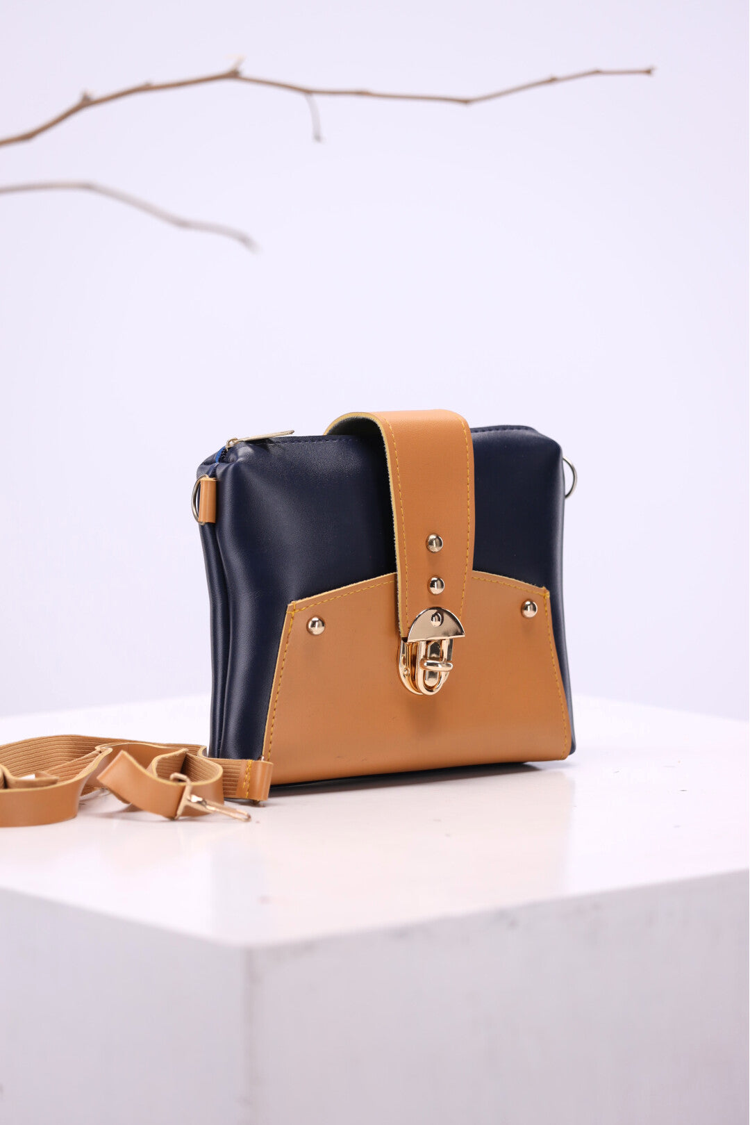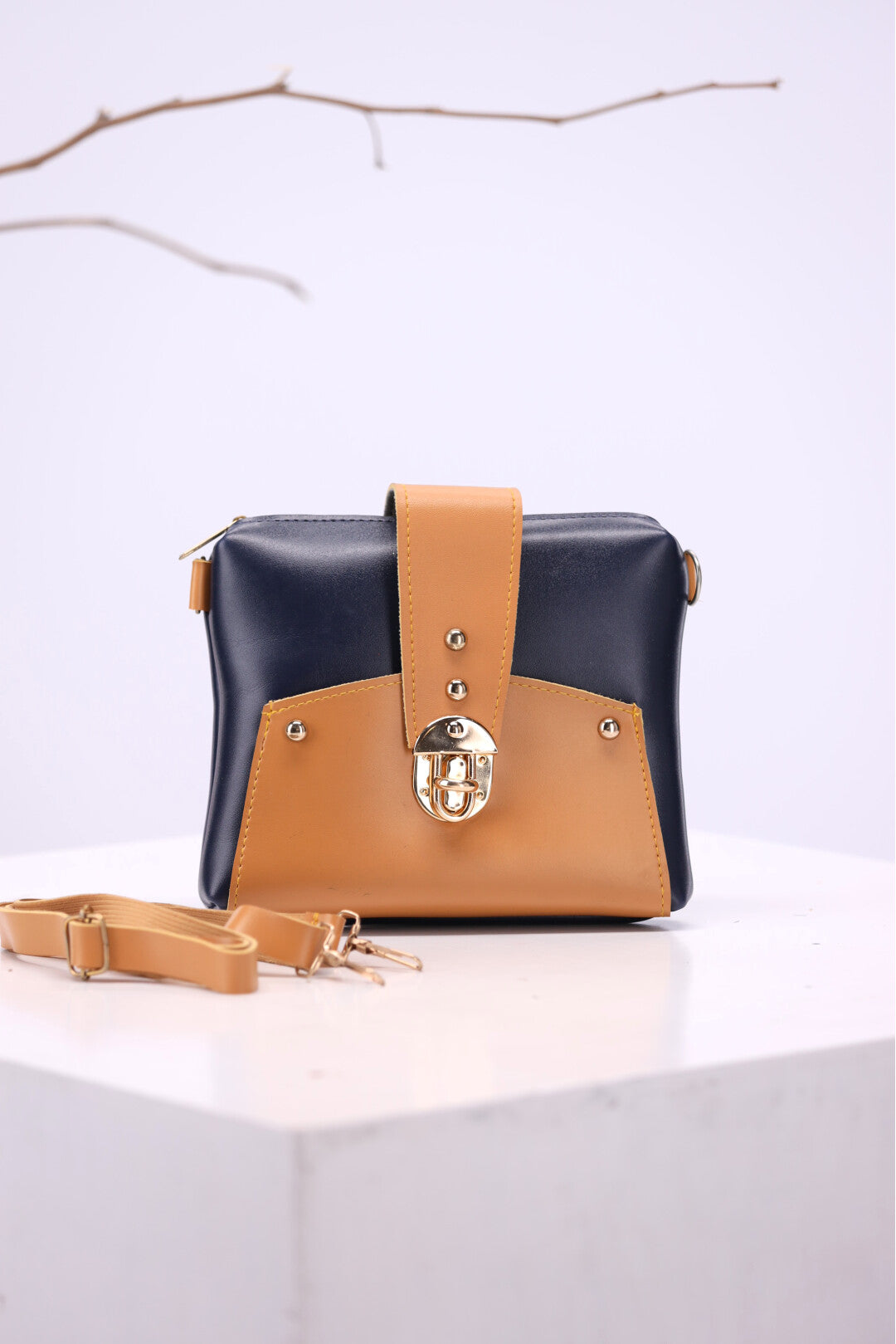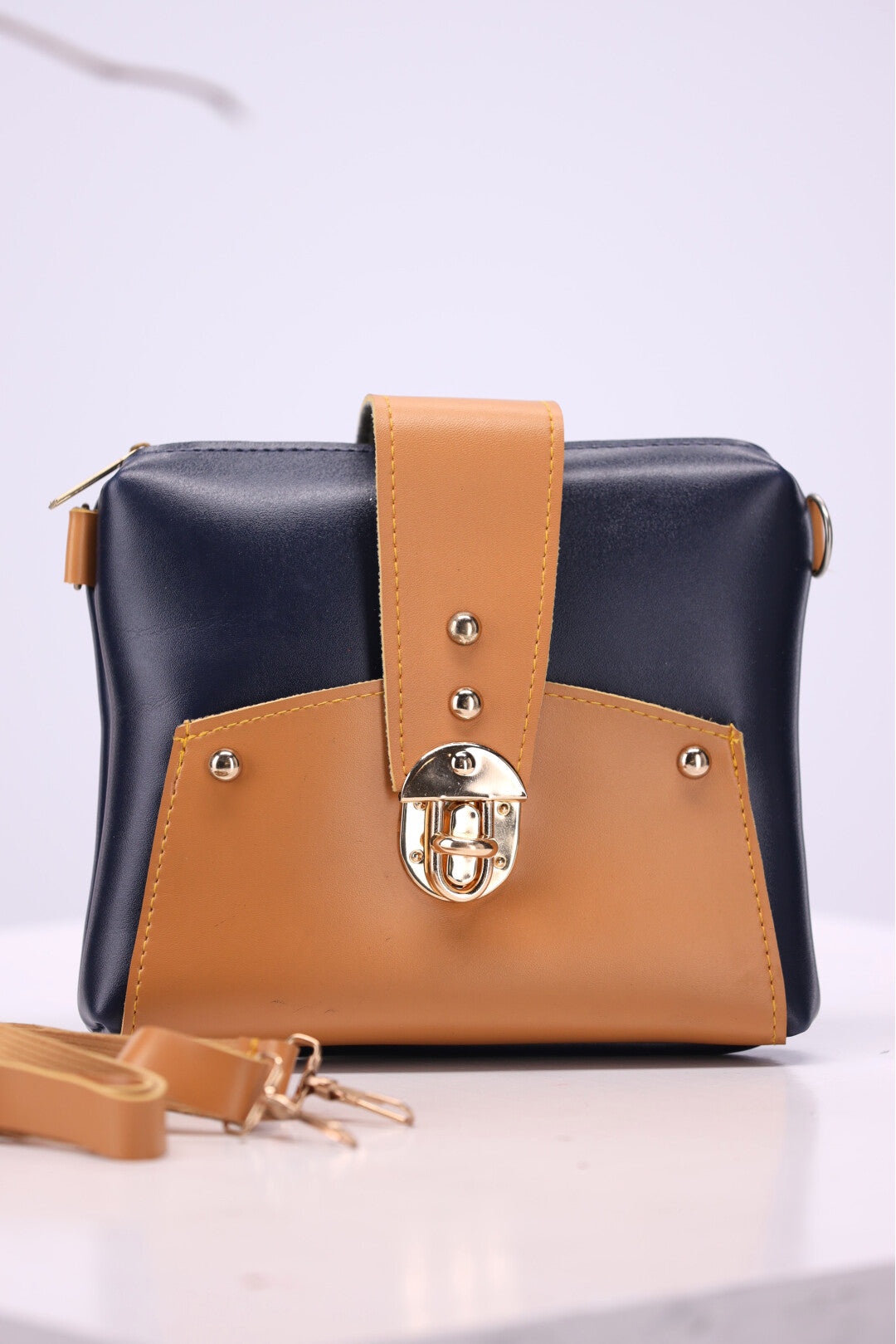Chic Contrast: This two-toned bag combines the sophistication of black with the warmth of tan for a timeless look. The polished gold hardware adds a touch of glamour, making it perfect for day or night.
